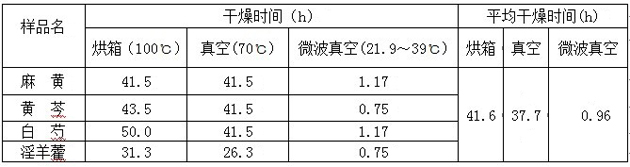 表2 各種干燥方法對(duì)干燥時(shí)間的影響