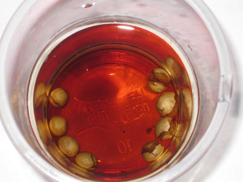 五周 | 有90%粒開裂,未開裂約30粒 | 未有開裂,有變色 |